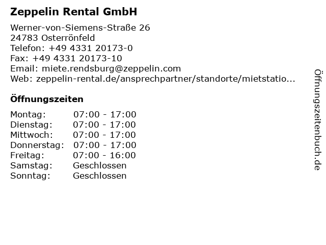 | Öffnungszeiten Zeppelin Rental GmbH in Osterrönfeld anzeigen | |