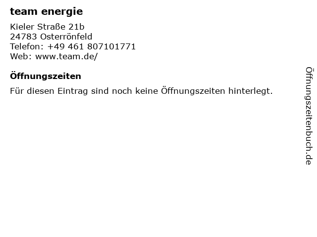 | Telefonnummer team energie in Osterrönfeld (+49 461 807101771) anrufen | |