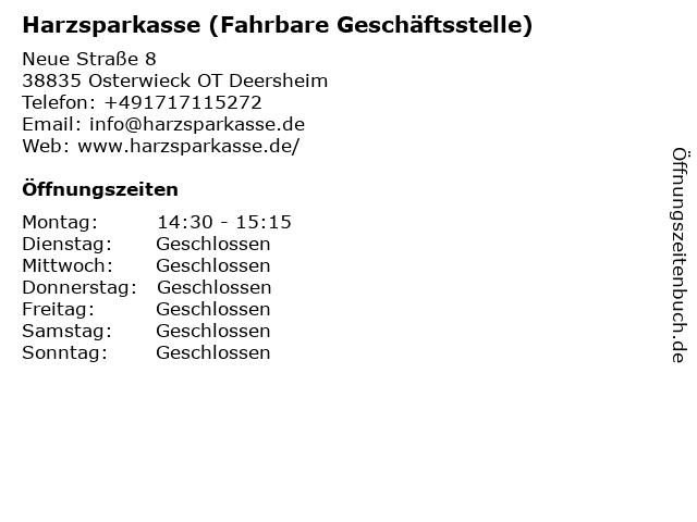 Branchen & Suchbegriffe zu Harzsparkasse (Fahrbare Geschäftsstelle):fahrbare, geschäftsstelle, harzsparkasse |