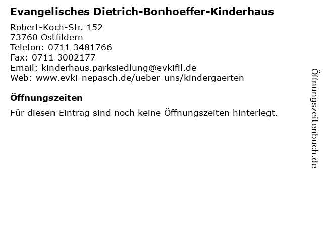 | Evangelisches Dietrich-Bonhoeffer-Kinderhaus anrufen | |