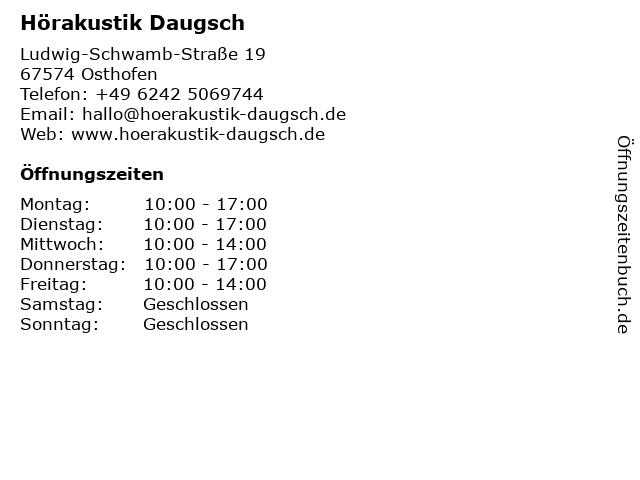 | Öffnungszeiten Hörakustik Daugsch in Osthofen anzeigen | |