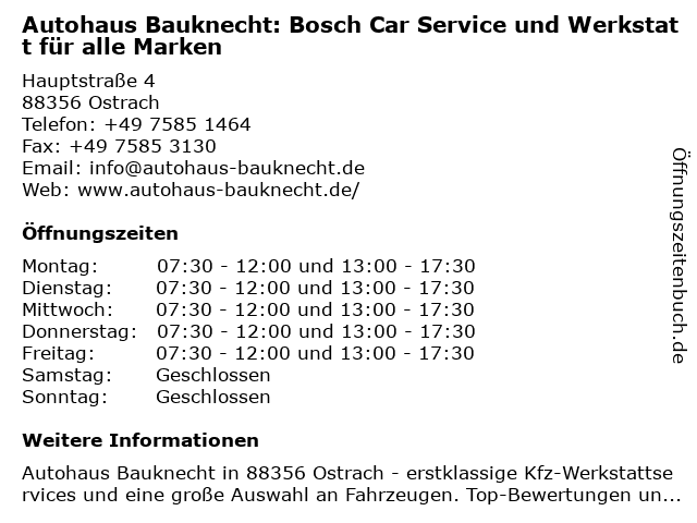| Freitag | 07:30-12:00 und 13:00-17:30 |