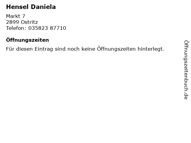 | Öffnungszeiten Hensel Daniela in Ostritz anzeigen | |