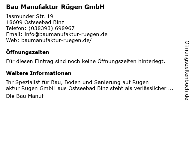 | Bau Manufaktur Rügen GmbH anrufen | |