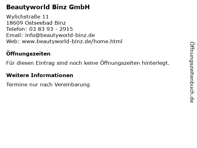| Beautyworld Binz GmbH anrufen | |