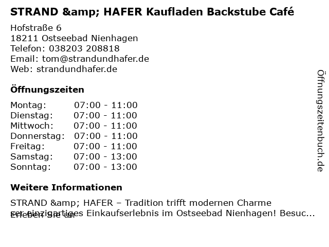 2 STRAND & HAFER Backstube Bistro Kaufladen (Entfernung: 4,15 km) An Der Waterkant 2, 18211 Börgerende-Rethwisch 6 |