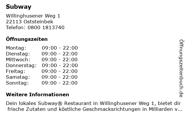 Öffnungszeiten Subway in Oststeinbek anzeigen | |