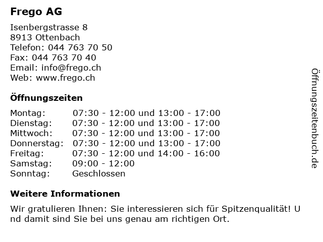 | Öffnungszeiten Frego AG in Ottenbach anzeigen | |