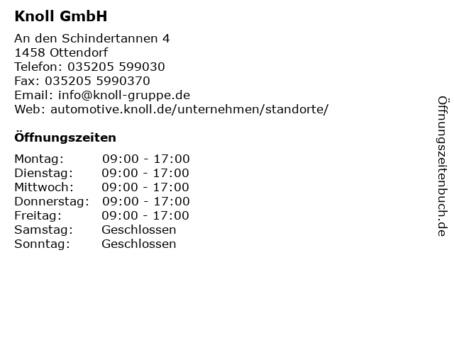 | Öffnungszeiten Knoll GmbH in Ottendorf anzeigen | |