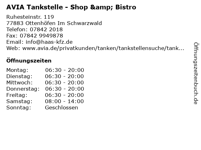 AVIA Tankstelle - Shop & Bistro in Ottenhöfen Im Schwarzwald: Telefonnummer, Öffnungszeiten und Adresse