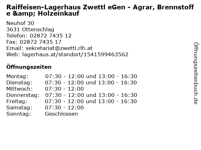 Branchen & Suchbegriffe zu Raiffeisen-Lagerhaus Zwettl eGen - Agrar, Brennstoffe & Holzeinkauf:agrar, brennstoffe, egen, garten, holzeinkauf, lager, lager für stallbau, lager für tierbesitzer, lagerhaus, lagerhäuser, landwirtschaft, raiffeisen, rohstofflager, tierfutter, zwettl |