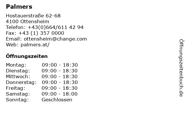 | Öffnungszeiten Palmers in Ottensheim anzeigen | |