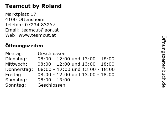 | Öffnungszeiten Teamcut by Roland in Ottensheim anzeigen | |