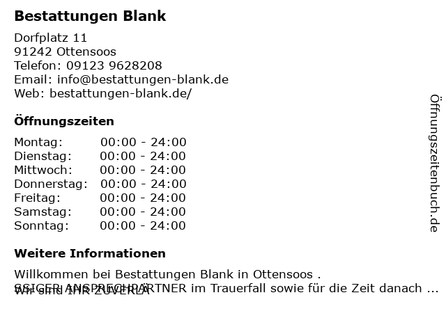 | Öffnungszeiten Bestattungen Blank in Ottensoos anzeigen | |