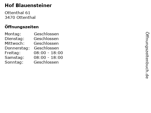 | Öffnungszeiten Hof Blauensteiner in Ottenthal anzeigen | |