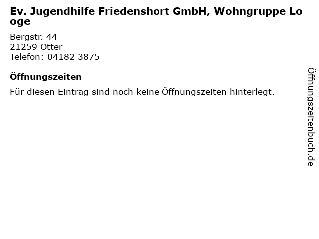 | Ev. Jugendhilfe Friedenshort GmbH, Wohngruppe Looge anrufen | |