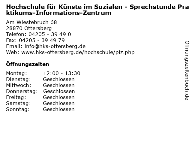 Branchen & Suchbegriffe zu Hochschule für Künste im Sozialen - Sprechstunde Praktikums-Informations-Zentrum:bildung, hochschule, informations, künste, lehre, praktikums, sozialen, sprechstunde, studium, uni, zentrum |