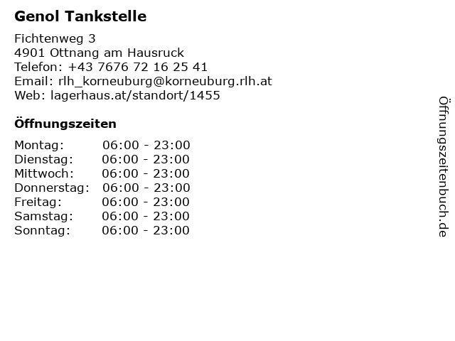 3 Raiffeisen Lagerhaus Gaspoltshofen - Genol Tankstelle (Entfernung: 7,21 km) Obeltsham 7, 4673 Gaspoltshofen 4 Lagerhaus Vöcklabruck-Gmunden eGen - Genol Tankstelle (Entfernung: 8,79 km) Hauptstraße 14, 4692 Niederthalheim 5 Lagerhaus Vöcklabruck-Gmunden eGen - Genol Tankstelle (Entfernung: 9,47 km) Huberstraße 1a, 4690 Schwanenstadt 6 Raiffeisen Lagerhaus Bachmanning - Genol Tankstelle (Entfernung: 11,09 km) Unterseling 27, 4672 Bachmanning |