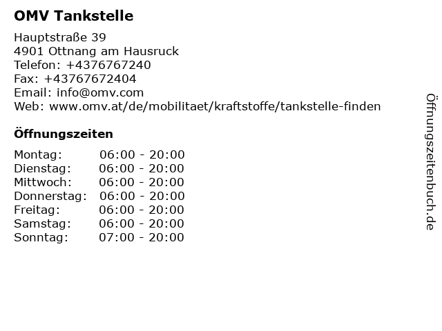 | Öffnungszeiten OMV Tankstelle in Ottnang am Hausruck anzeigen | |