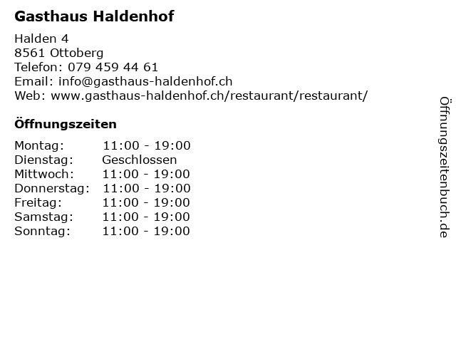 | Öffnungszeiten Gasthaus Haldenhof in Ottoberg anzeigen | |