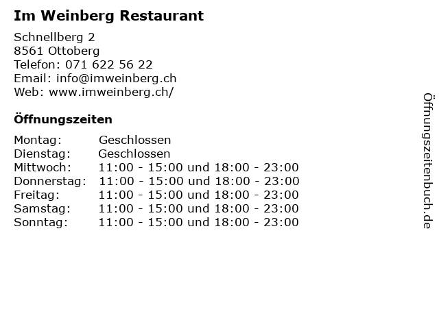 | Öffnungszeiten Im Weinberg Restaurant in Ottoberg anzeigen | |