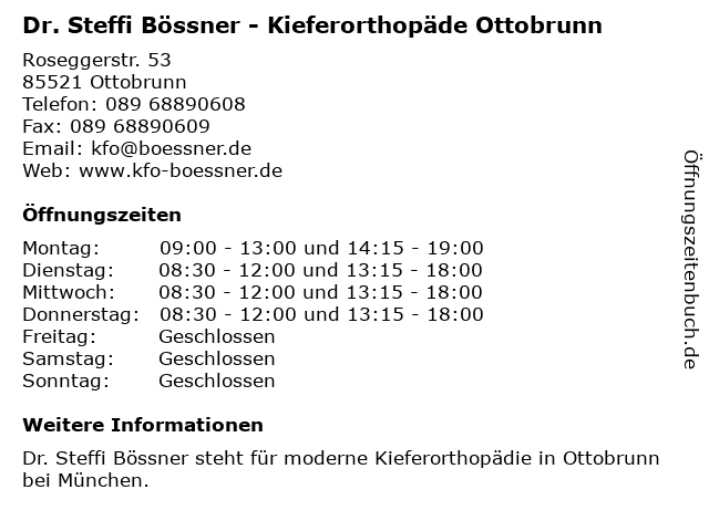Branchen & Suchbegriffe zu Dr. Steffi Bössner - Kieferorthopäde Ottobrunn:bössner, dr., kieferorthopäde, steffi |