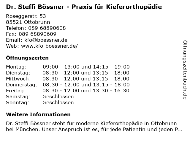 Branchen & Suchbegriffe zu Dr. Steffi Bössner - Praxis für Kieferorthopädie:bössner, dr., kieferorthopädie, praxis, steffi |