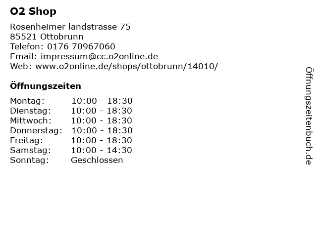 | Öffnungszeiten O2 Shop in Ottobrunn anzeigen | |