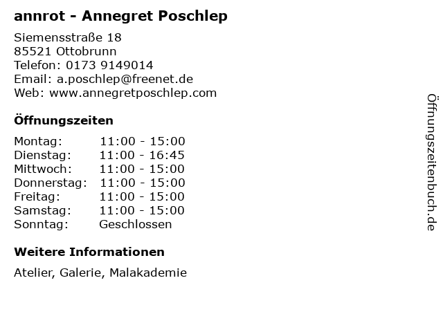 | Öffnungszeiten annrot - Annegret Poschlep in Ottobrunn anzeigen | |
