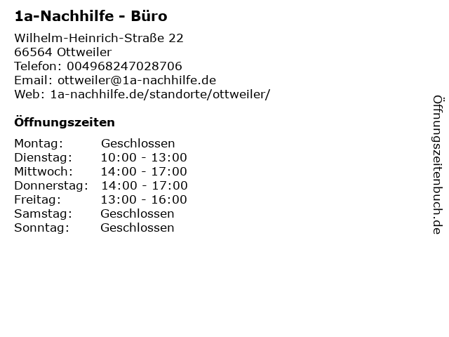 | Öffnungszeiten 1a-Nachhilfe - Büro in Ottweiler anzeigen | |