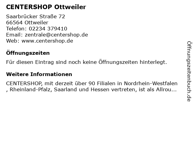 | Öffnungszeiten CENTERSHOP Ottweiler in Ottweiler anzeigen | |