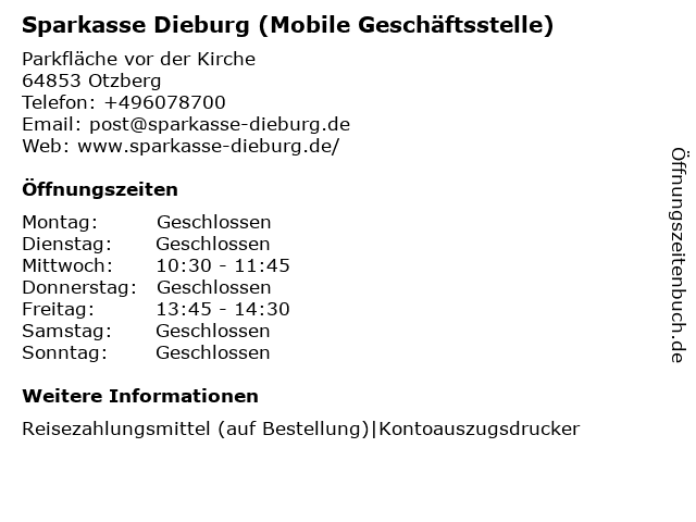Branchen & Suchbegriffe zu Sparkasse Darmstadt und Dieburg (ehem. SK Dieburg) (Mobile Geschäftsstelle):ehem., geschäftsstelle, mobile, sk, sparkasse |