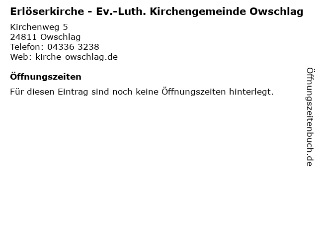 | Erlöserkirche - Ev.-Luth. Kirchengemeinde Owschlag anrufen | |