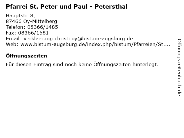 Branchen & Suchbegriffe zu Pfarrei St. Peter und Paul - Petersthal:amt, kirche, kirchlich, paul, peter, petersthal, pfarrei |