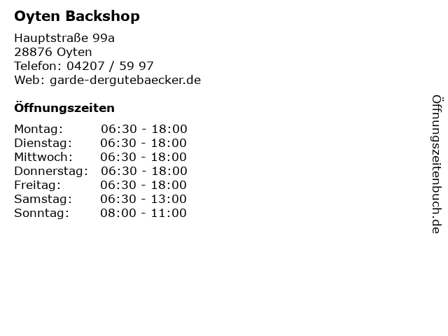 | Öffnungszeiten Oyten Backshop in Oyten anzeigen | |
