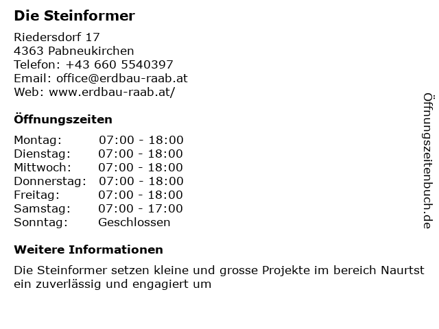 | Öffnungszeiten Die Steinformer in Pabneukirchen anzeigen | |