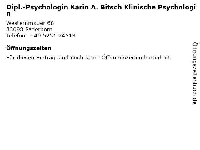| Dipl.-Psychologin Karin A. Bitsch Klinische Psychologin anrufen | |