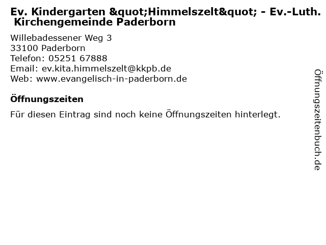 | Ev. Kindergarten "Himmelszelt" - Ev.-Luth. Kirchengemeinde Paderborn anrufen | |