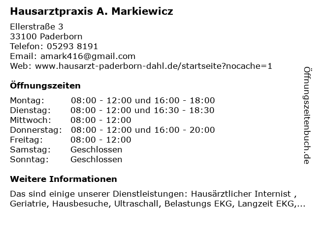 Branchen & Suchbegriffe zu Hausarztpraxis A. Markiewicz:a., hausarztpraxis, innere medizin, markiewicz, notfallversorgung |