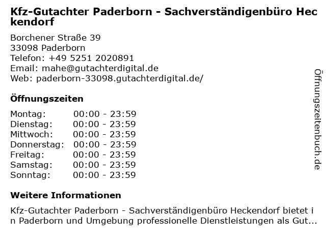 6 Kfz-Gutachter Schäfertöns - Kfz-Gutachter Paderborn - Kfz-Sachverständiger (Entfernung: 4,24 km) Walter-schrader-weg 20, 33100 Paderborn |