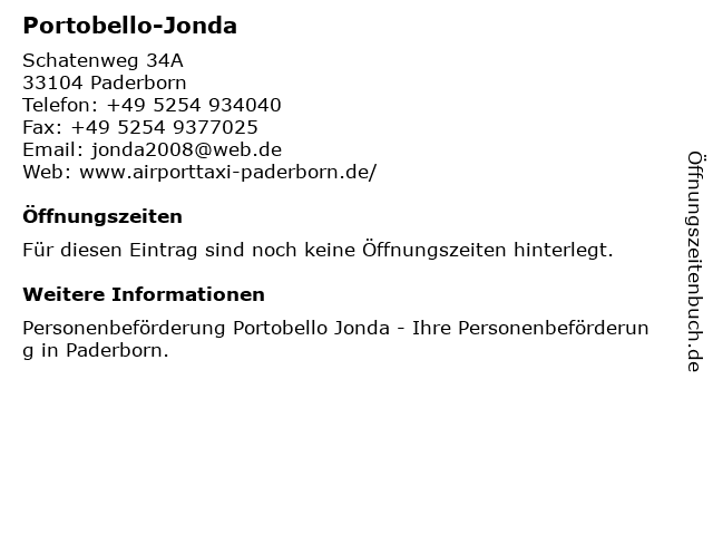 | Öffnungszeiten Portobello-Jonda in Paderborn anzeigen | |