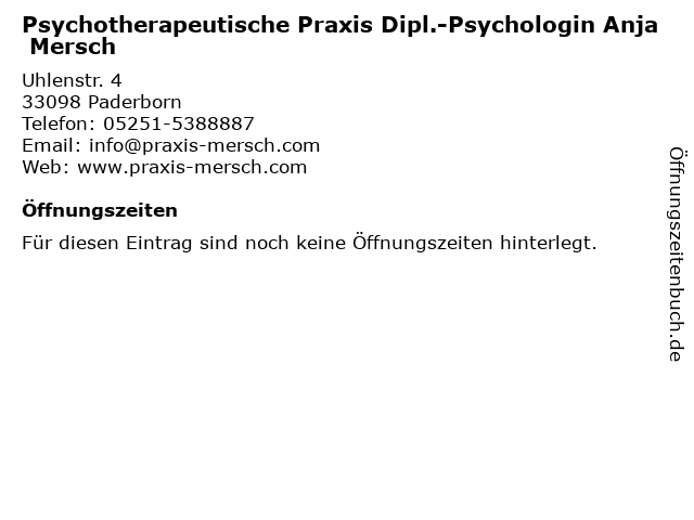 Branchen & Suchbegriffe zu Psychotherapeutische Praxis Dipl.-Psychologin Anja Mersch:anja, dipl., mersch, praxis, psychologin, psychotherapeutische |