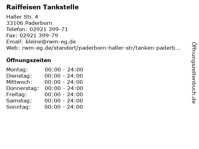 | Öffnungszeiten Raiffeisen Tankstelle in Paderborn anzeigen | |