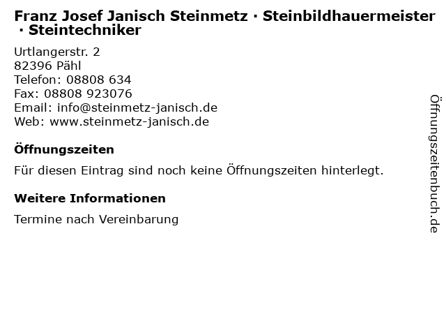 | Franz Josef Janisch Steinmetz · Steinbildhauermeister · Steintechniker anrufen | |