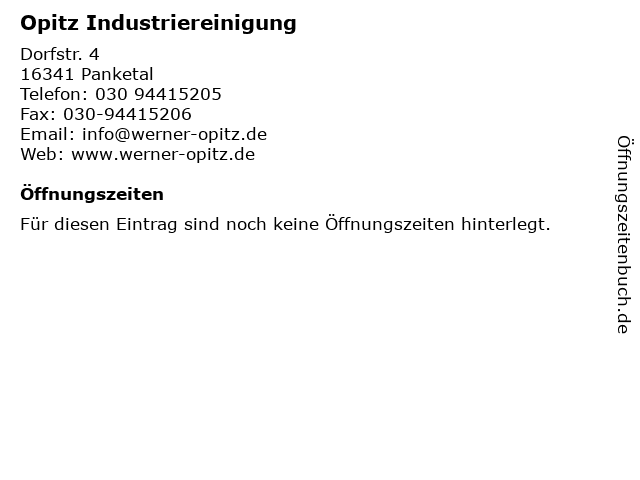 | Öffnungszeiten Opitz Industriereinigung in Panketal anzeigen | |
