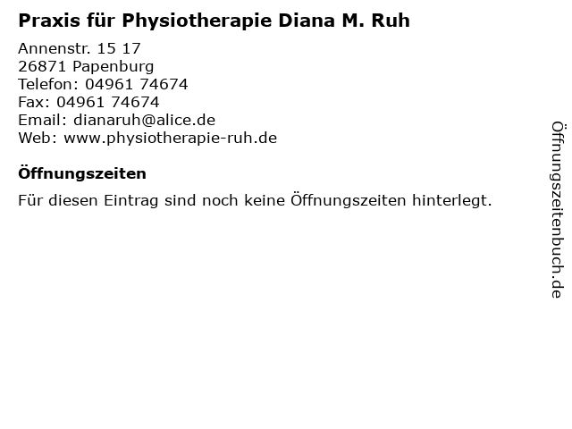 | Praxis für Physiotherapie Diana M. Ruh anrufen | |
