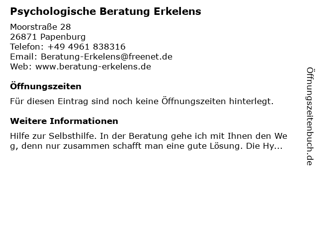 Branchen & Suchbegriffe zu Psychologische Beratung Erkelens:beratung, erkelens, hypnose, papenburg, psychologische, psychologische beratung, rauchentwöhnung |