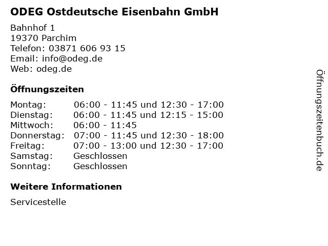 Branchen & Suchbegriffe zu ODEG Ostdeutsche Eisenbahn GmbH:eisenbahn, eisenbahngesellschaften, genossenschaften, odeg, ostdeutsche, verkehrsbetriebe, verkehrsunternehmen |