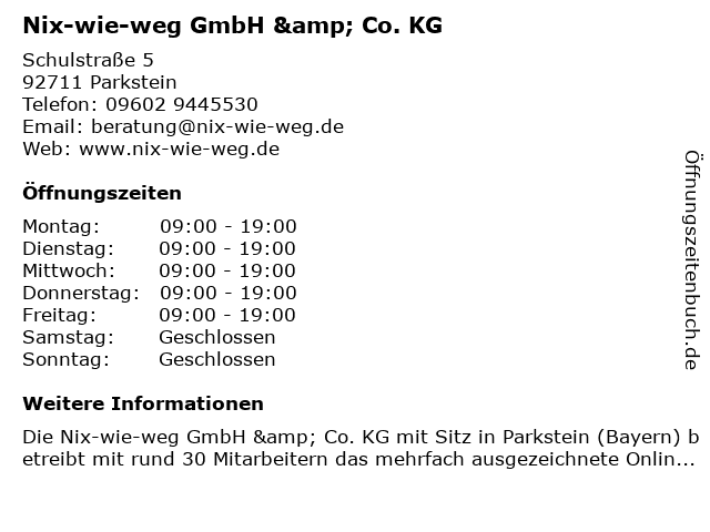 | Adresse Nix-wie-weg GmbH & Co. KG in Parkstein anzeigen |