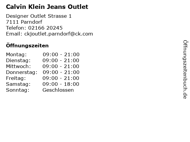 | Öffnungszeiten Calvin Klein Jeans Outlet in Parndorf anzeigen | |